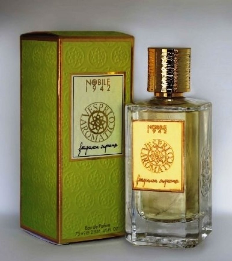Vespri Aromatico Nobile 1942 - это аромат для мужчин и женщин. Это новый аромат, Vespri Aromatico выпущен в 2013. Верхние ноты: зеленые ноты, Бергамот, итальянский бергамот, укроп и морская соль; ноты сердца: Фенхель, Розмарин, Можжевельник и Герань; ноты базы: Сандаловое дерево, Белый кедр, Тонка бобы, Кашемировое дерево, Мускус, дубовый мох и Амбра.
