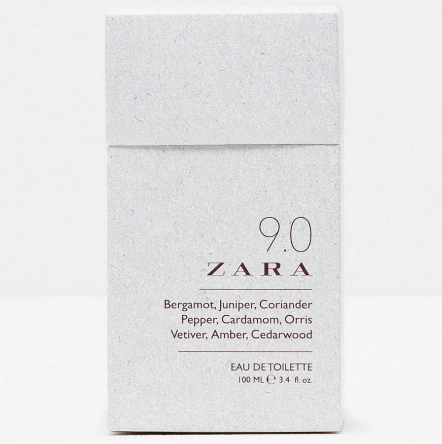 Zara 9.0 - это аромат для мужчин. Это новый аромат, Zara 9.0 выпущен в 2015. Ноты: бергамот, можевельник, кориандер, перец, кардамон, корень фиалки, ветивер, амбра, сандаловое дерево.